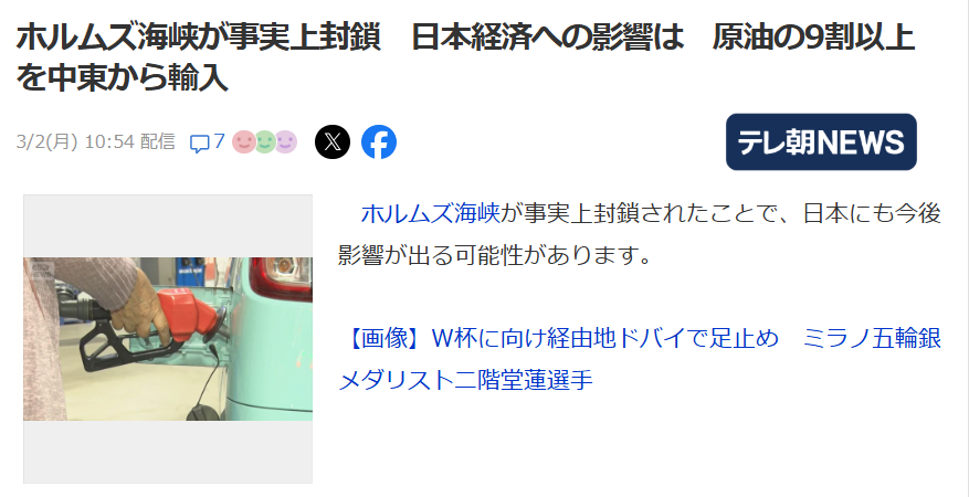 为什么伊朗一个海峡的封锁能让日本股市如此哀嚎,这其中的厉害看看数据就能知晓。现今,全球20%的石油消耗量都要经过霍尔木兹海峡。而对于资源匮乏的日本来说,这个数字更惊人,日本90%以上的原油进口依赖中东。虽然日本说还有254天的石油储备,但很多人都感到了恐慌。