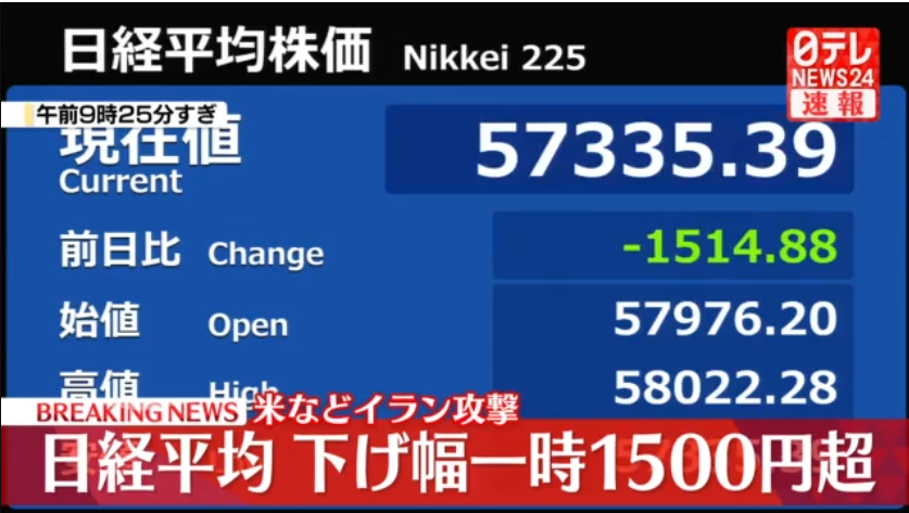 3月2日一早,虽迟但到,东京证交所的显示屏一片惨绿。日经平均股价像断了线的风筝,一度暴跌超过1500点。交易大厅里的空气仿佛凝固了,每一个跳动的数字都在诉说着焦虑和不安。