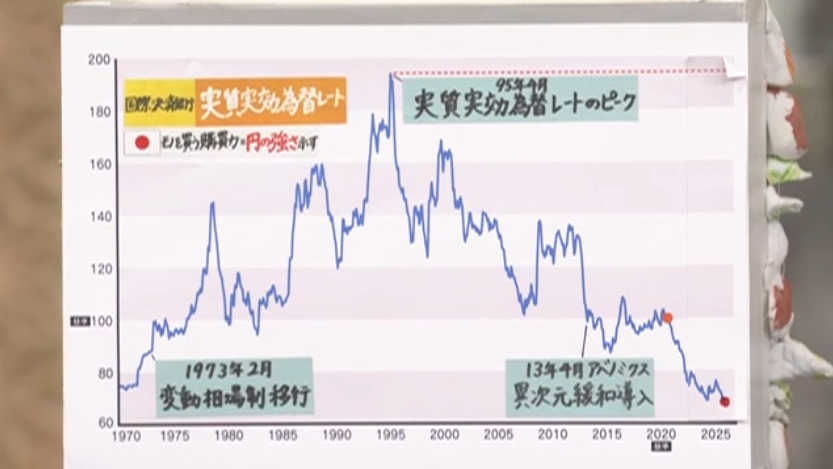 在全球54个国家中,日本的购买力排名第48位。即便涨价到了500日元,也改变不了日元沦为弱势货币的事实。更扎心的数据来自国际结算银行,衡量日元真正购买力的“实际有效汇率”,在2026年1月跌到了自1973年浮动汇率制以来的历史最低点。