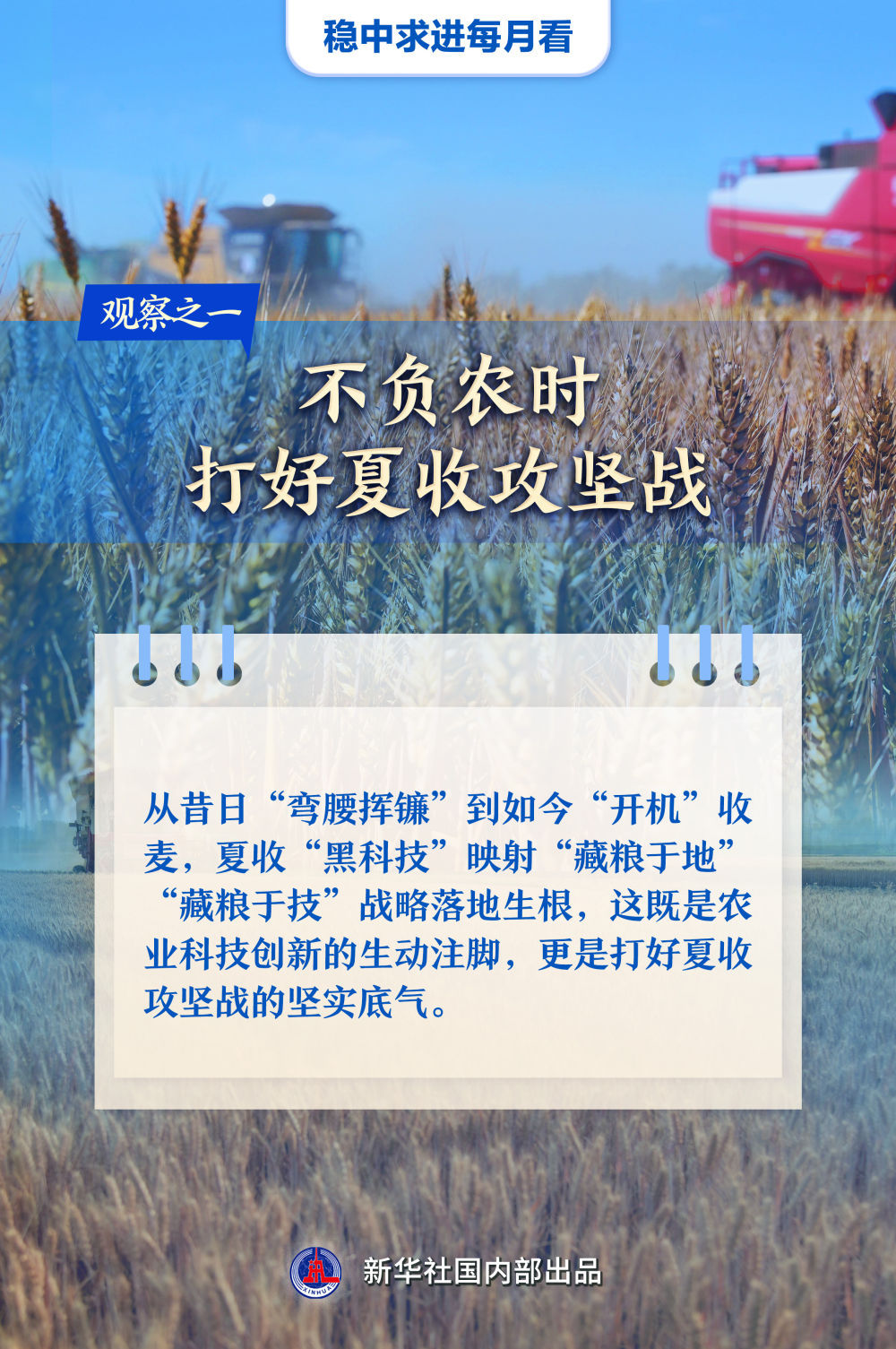 夏粮丰收是全年粮食生产关键一仗。6月以来,全国“三夏”工作高效推进。在安徽,6月5日麦收就基本结束,较往年提前3天;在山东德州,新型收割机抢收小麦,将粮食损耗控制在1%以内;在河南,大规模机收从开始到结束历时22天,8500多万亩小麦顺利完成收割,保持了夏粮产量总体稳定……